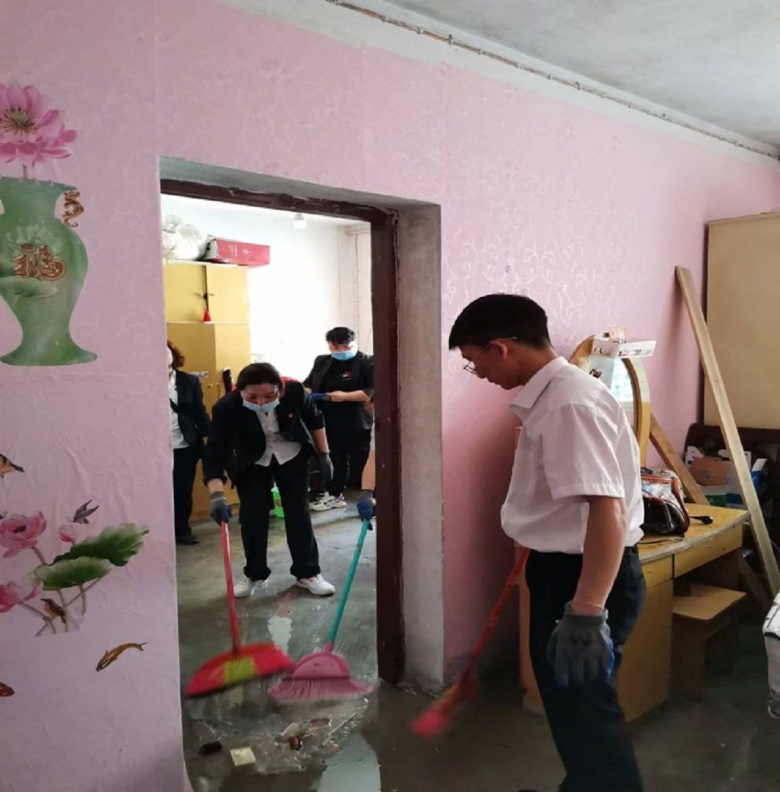 28日上午,巫宿琴再次帶領(lǐng)支部黨員到被積水倒灌的居民家中為其清掃淤泥、打掃房屋?,F(xiàn)場,大家分工合作,井然有序,有的鏟垃圾、有的拖地。在支部黨員和居民的共同努力下,將居民家中打掃得干干凈凈。